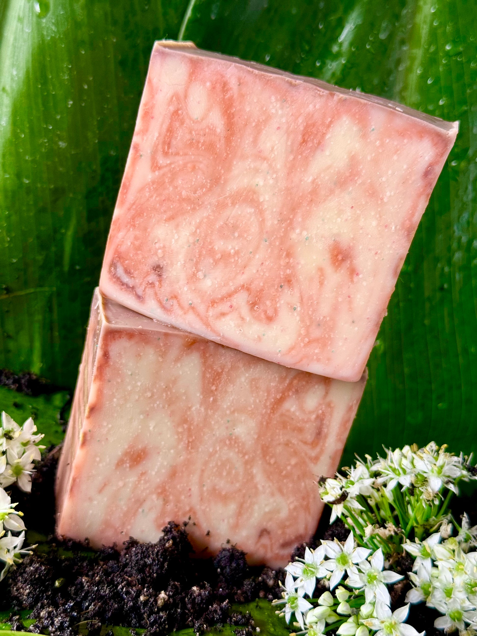Ingredients: Saponified oils of Olive, Coconut, & Macadamia Nut. Kaua’i Beef Tallow, Coconut milk, O’ahu Pork Lard, Kaua’i Red Alaea Sea salt, Tussah silk, Jojoba beads, Volcanic Ash, White clay, Orange clay, Magenta clay, Pumice, Leaf oils.