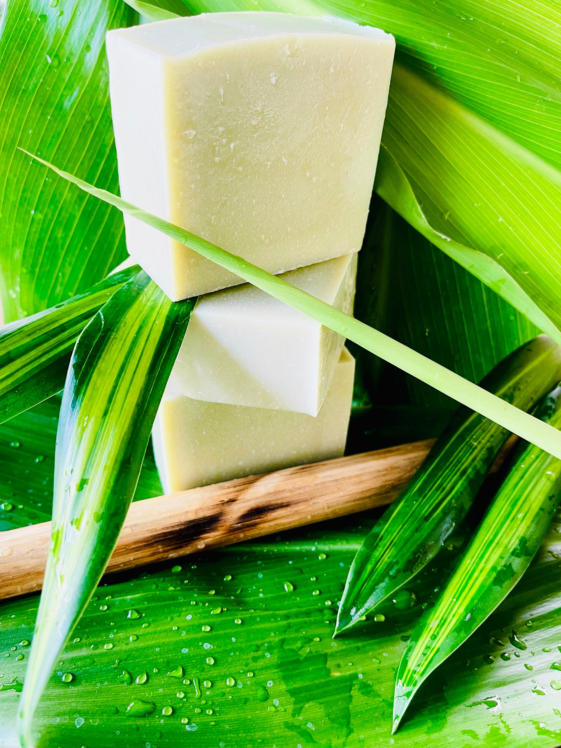 Ingredients: Saponified oils of Maracuja (Passionfruit seed), Andiroba, Olive, Coconut, Macadamia Nut. Goat’s milk, Hawaiian sea salt (2200 ft Deep), Bamboo extract, Bamboo shoot powder, Satsuma extract, Lime juice, Green clay, Pumice, Leaf oils.